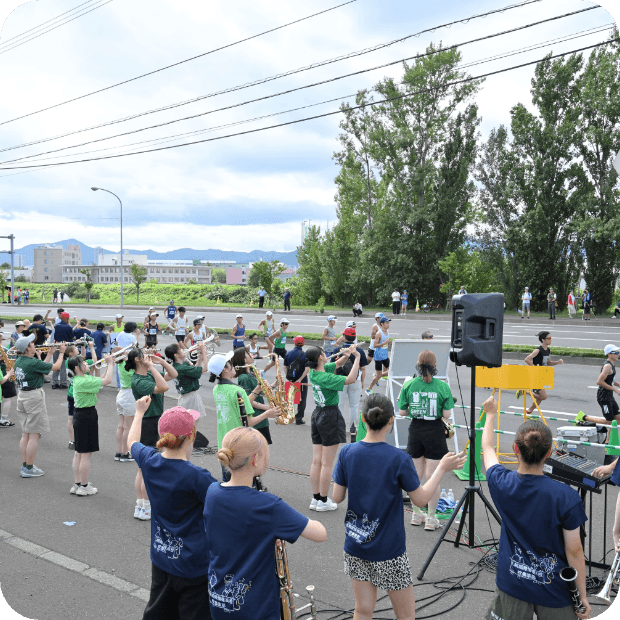 手稲高校さん、国際情報高校さんの吹奏楽は単調な新川通の道中で毎年楽しみにしております。