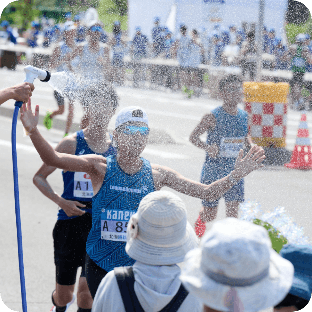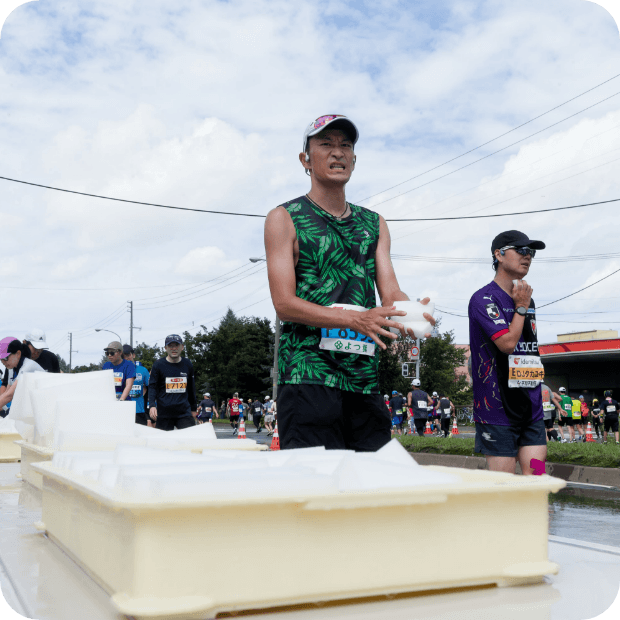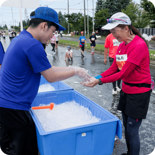 数多くの給水ポイントの設置に加えてシャワー、氷、雪など様々な暑さ対策を用意してくれていました。