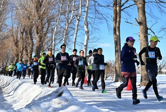 「北国のランナーなのだから、雪道も楽しくランニングしよう」と、NPO法人ランナーズサポート北海道は2012~16年にかけ雪上ランニングの効用、グッズ紹介やランニング講習会を行ってきました。冬の屋外ランニングの認知度が高まる中、八紘学園北海道農業専門学校(札幌市豊平区)の協力で2015年に北海道スノーマラソン大会がスタート。大会の歴史を積み重ねて、25年1月には第11回大会を開催。500人のランナーが抜けるような青空の下で圧雪された3km、10kmレースを疾走しました。北海道内の冬道ランニング大会は、札幌のほか旭川、千歳、名寄など各地で企画・開催されており、冬の屋外ランニング文化が広がりを見せています。