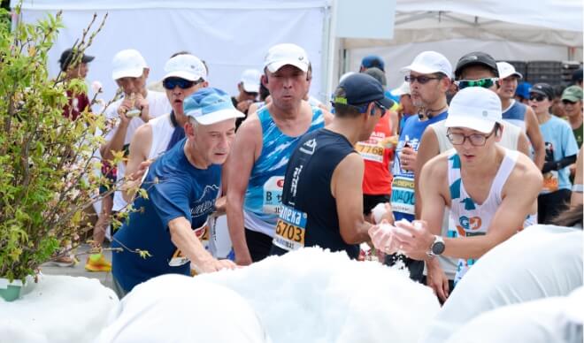 北海道沼田町の雪を使ってランナーをサポート