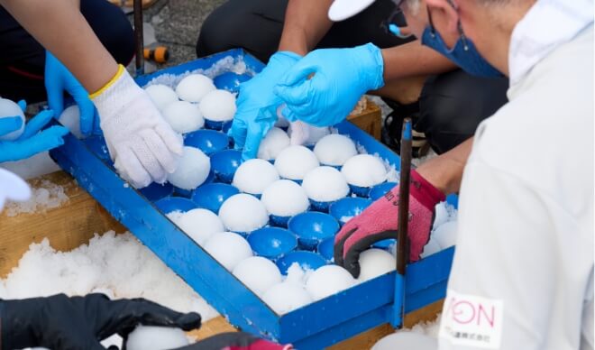 24.8km地点付近の前田森林公園内にサポートエリアを開設します。給食や給水に加えて、アイシングに使用できる雪を提供します。氷を製造するのではなく、沼田町で夏の冷房用等に貯蔵している天然の雪を供給し、環境にやさしい大会を目指します。